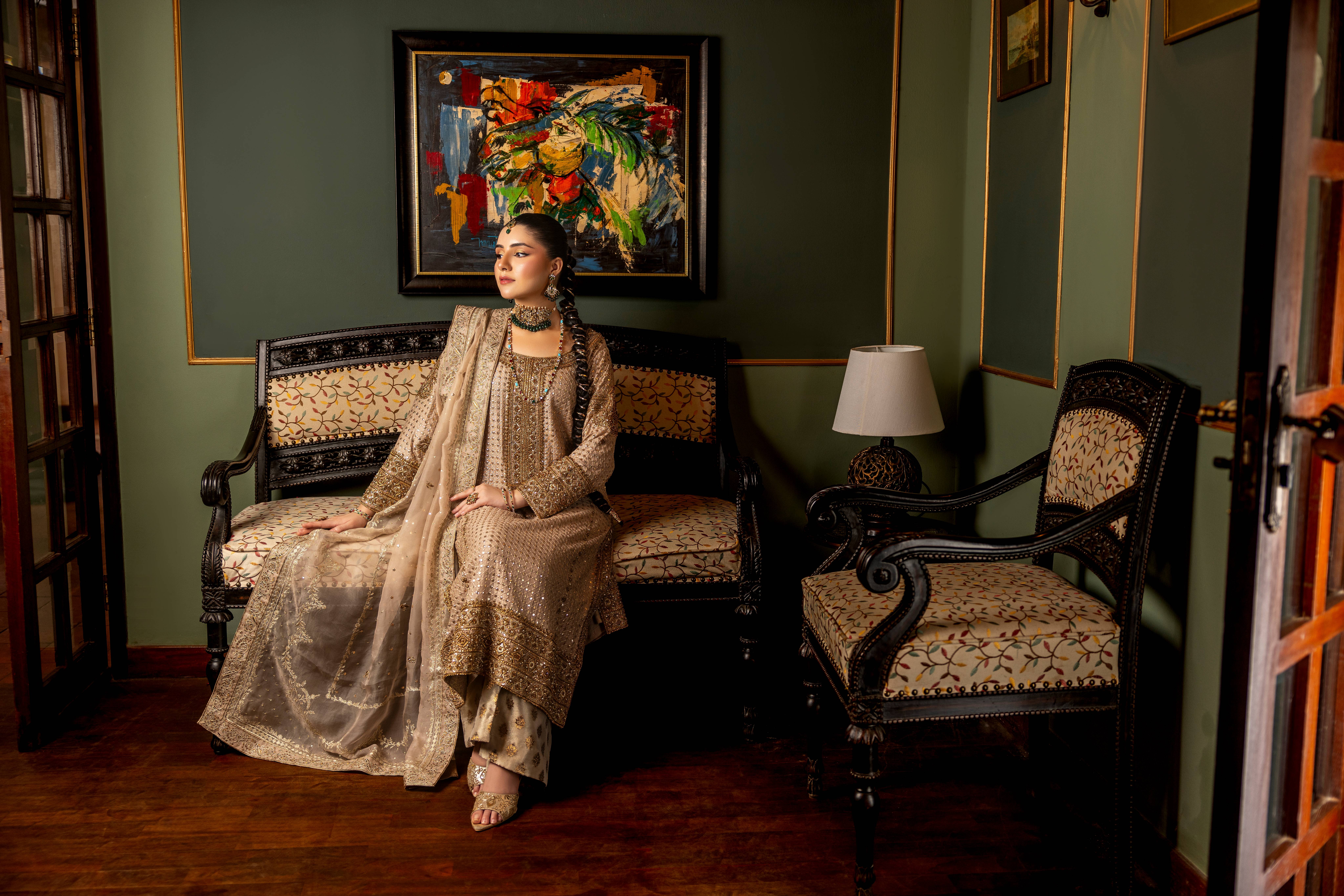 Discover the epitome of grace and sophistication with our latest party wear ensemble, "RAVAYAT". This exquisite outfit features a pure khaddi net shirt paired with a pure organza dupatta, both adorned with intricate zardozi embellishments. The neckline is adorned with detailed embellishments, and the sleeves are beautifully embroidered. The delicate beige hue adds a touch of understated elegance, making it perfect for your next festive gathering